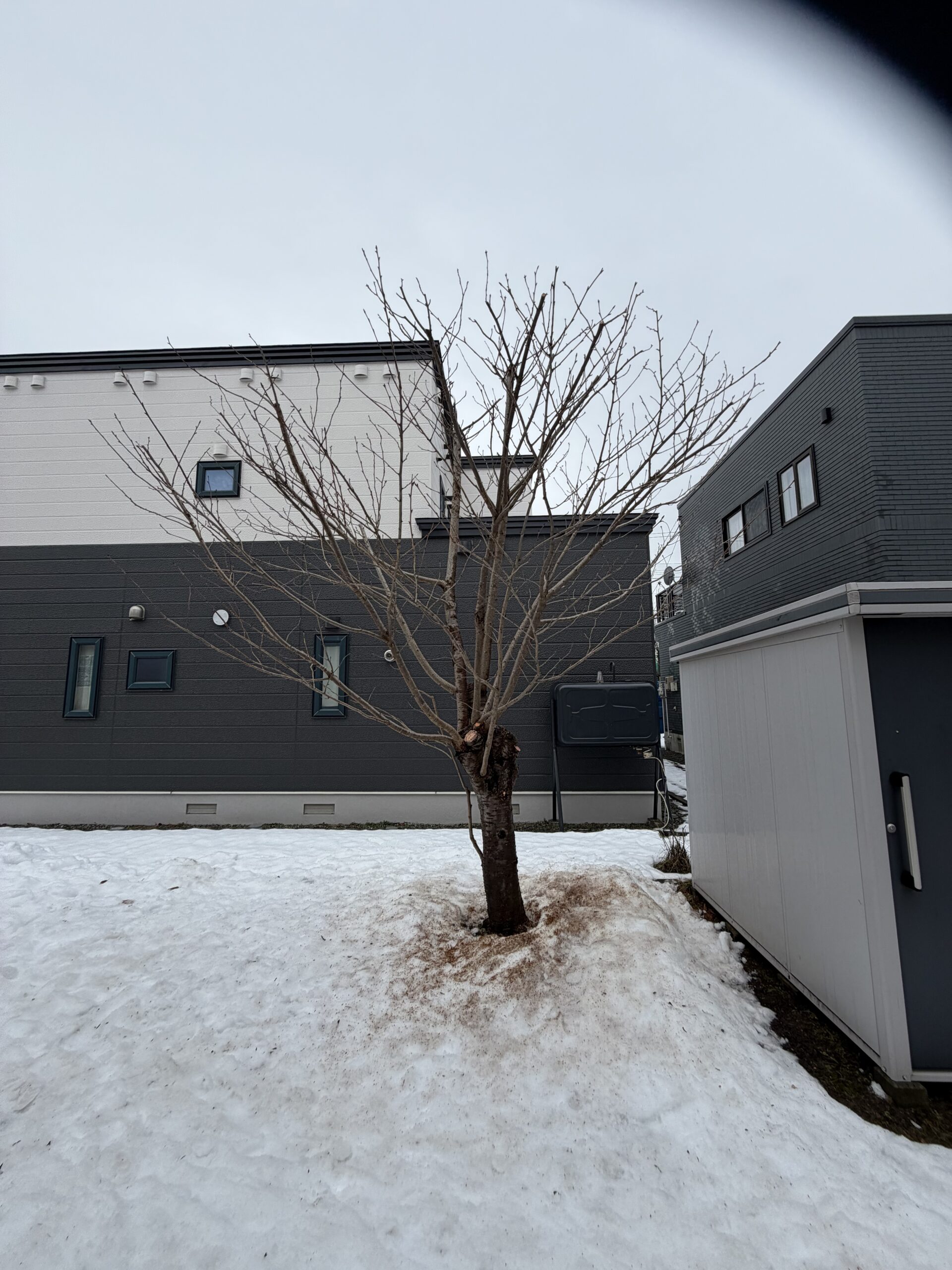 何年も前に枯れたと思われます太い枯れ枝が数本ありました。でも良かったことに木が元気なので、枯れ枝の根元の方から花芽が着いている新しい枝がこれも数本伸びていました。