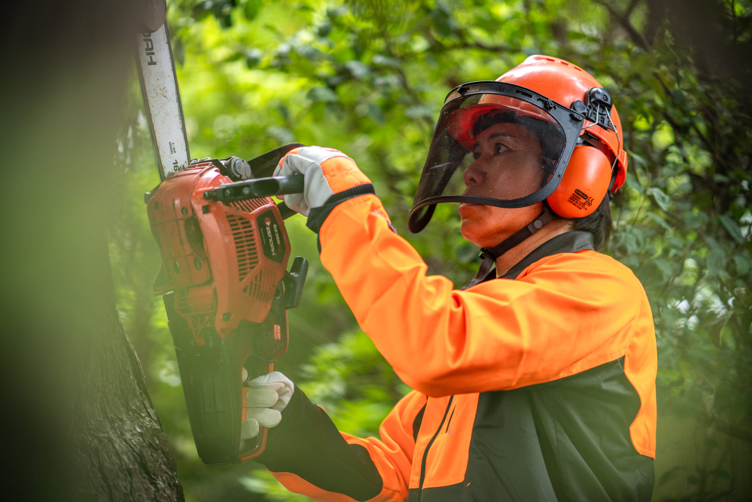 作業内容としましては、伐採は根元近くで幹を切断することで、伐根は根株ごと掘り取ることです。